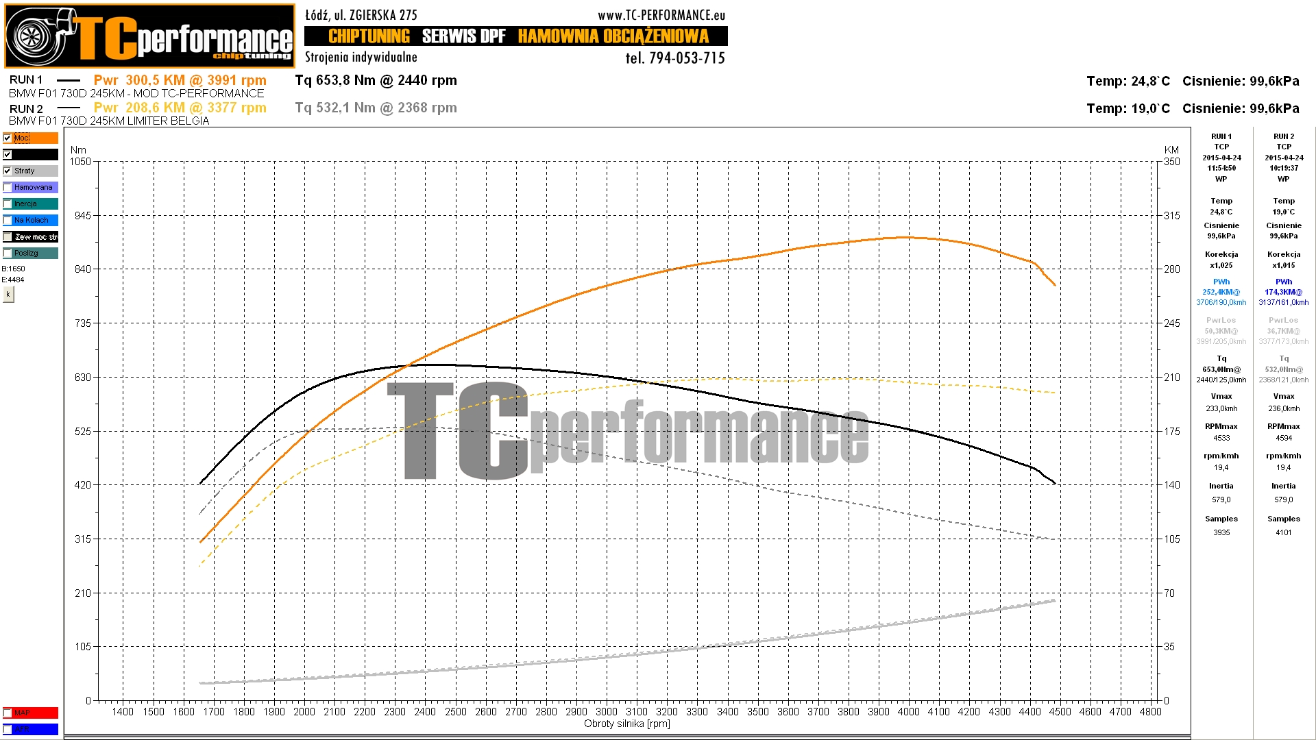 Przykładowe wykresy BMW 5 F10/F11 530d 245 KM 180 kW