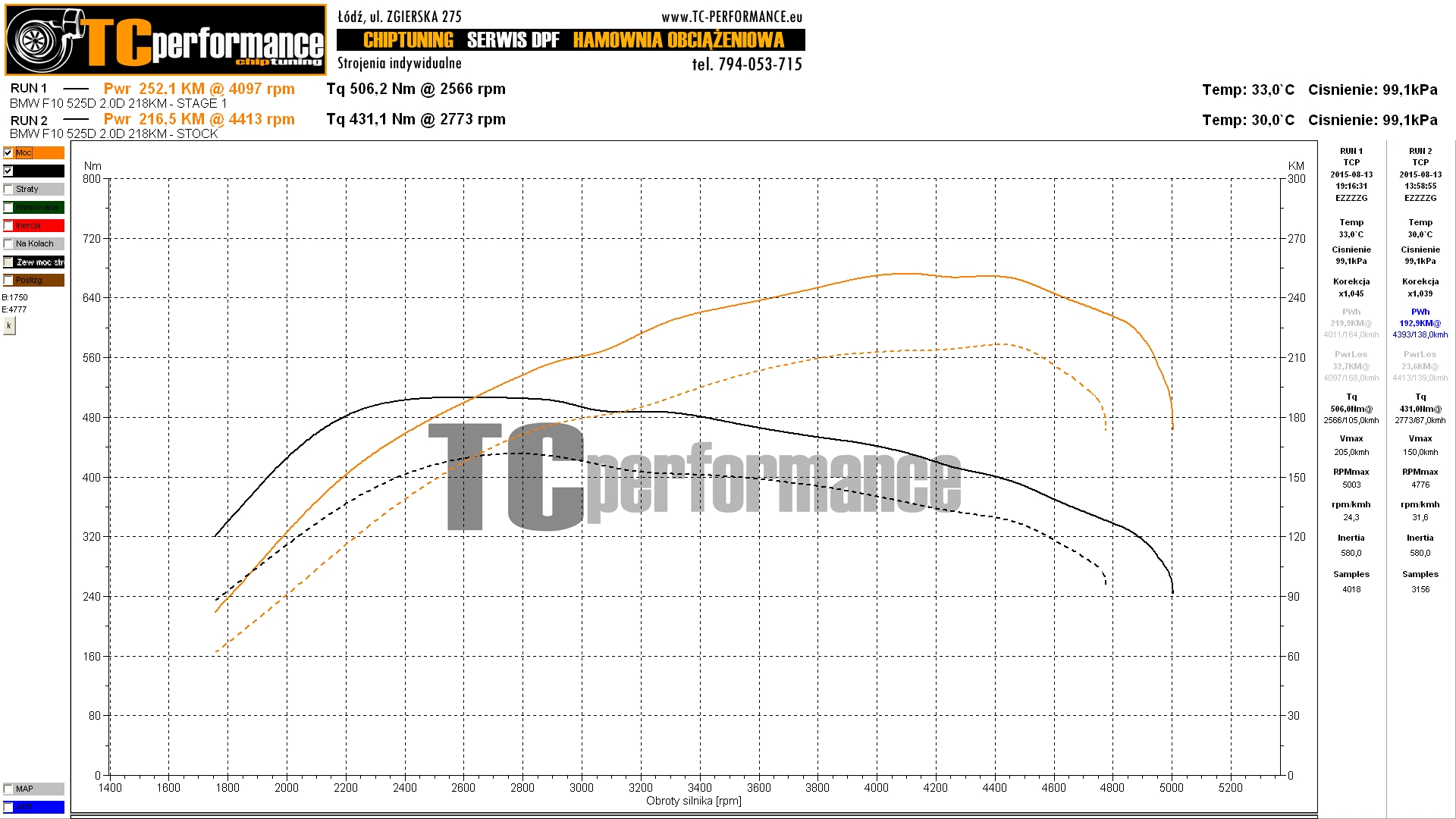Przykładowe wykresy BMW 5 F10/F11 525d 218 KM 160 kW